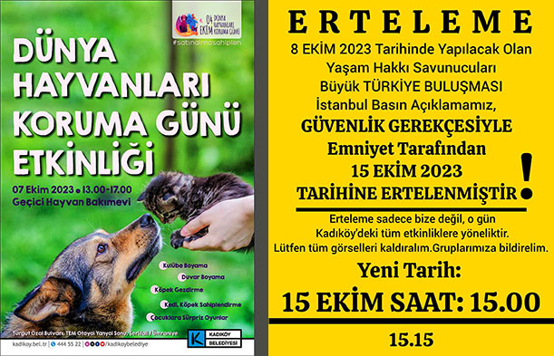 06 Ekim Pazar 12.00 -17.00 Kadıköy Belediyesi Geçici Hayvan Bakımevinde Dünya Hayvanları Koruma gününü kutluyoruz