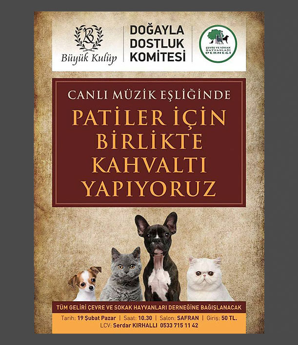 Bakımevimizin uzun yıllardır gönüllüsü olan Aslı Aybars, üyesi olduğu Büyük Kulüp Doğayla Dostluk Komitesi ile birlikte tüm geliri bakımevimizdeki canlarımıza bağışlanacak bir etkinlik düzenledi.